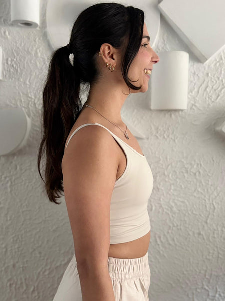 Inspirado en la diosa de la luna, el Selene Top representa equilibrio y poder femenino. Su diseño largo con doble tirante estiliza la silueta sin perder comodidad. Confeccionado en tejido técnico de alto rendimiento con relleno extraíble, ofrece sujeción, suavidad y libertad de movimiento para entrenar o para tu día a día.